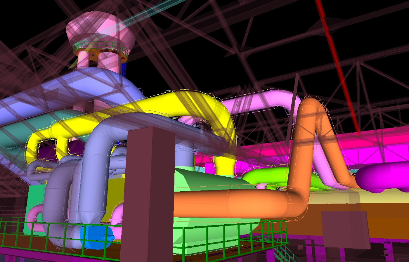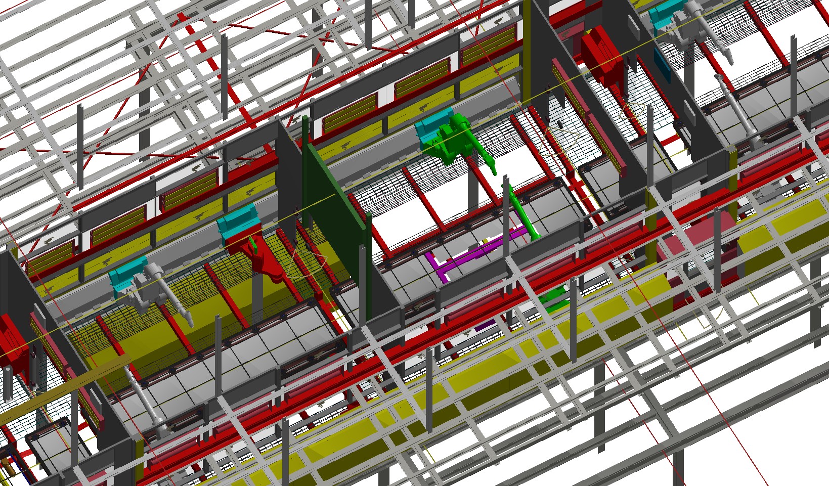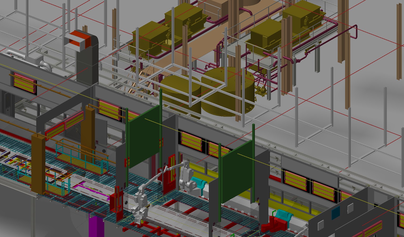 3D CAD Digitale Fabrik und LayouterstellungWir nehmen Ihren Bestand incl. des Gebäude vor Ort auf. Die Modellierung der Anlagentechnik erfolgt in der Regel mit Microstation und den TRICAD MS Modulen Fördertechnik, Stahlbau, Heizung, Sanitär, Lüftung, Elektro.Neuanlagen planen und konstruieren wir lagegerecht und entsprechend Ihrer CAD Richtlinien. Die Detailtiefe geben Sie vor. Wir überprüfen unsere Planung mit NavisWorks auf Kollisionen. Sie erhalten von uns Layouts, Verfahrensschemata, Aggregateaufstellpläne, Verrohrungspläne, Belastungspläne, Anschlußpläne Elektrik, Fundamentpläne, Sicherheitslayouts etc. Beispiel TGA (3D Detailplanung der Verrohrung, Erstellung von Stücklisten, Montageplänen etc.)