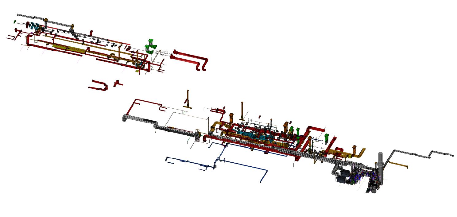 Beispiel Prozesslüftung (3D Detailplanung der Kanaele, Erstellung von Stücklisten, Montageplänen etc.)
